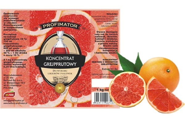 150ml koncentratu grejpfrutowego + 600ml wody + 250ml alkoholu 40%= 1 litr koktajlu o mocy 10%.