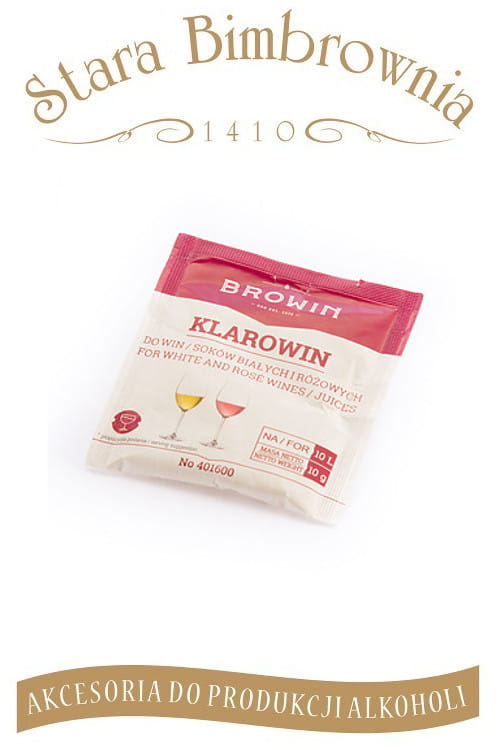 KLAROWIN - środek do klarowania win białych i różowych oraz soków. Po napęcznieniu, w wodzie, wykazuje właściwości adsorpcyjne. Wiąże w swej strukturze różne substancje, powoduje ich osadzenie. Jest w pełni bezpieczny, nie reaguje z winem.