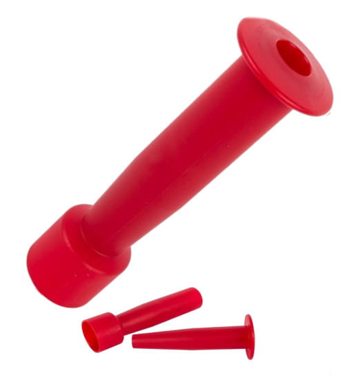Korkownica wykonana z trwałego plastiku, składa się z dwóch elementów tłoka z rączką oraz stożkowego elementu w którym umieszczamy korek. Korkownica polecana jest głównie do korków stożkowych lub korków o mniejszych średnicach.